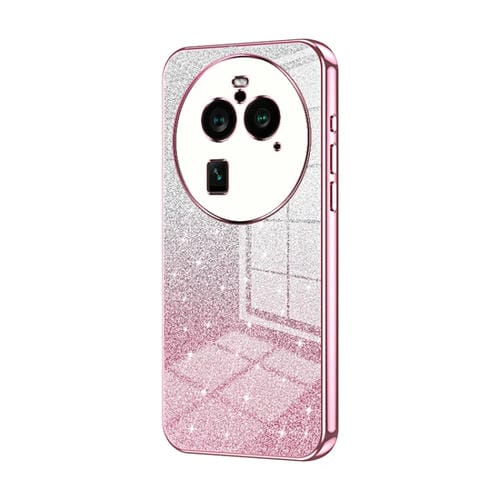 Para Oppo Find X6 Pro Estuche para Teléfono Galvanizado con Polvo de Brillo Degradado (Rosa)