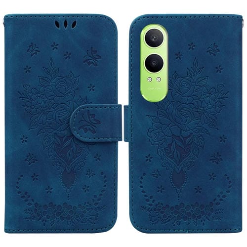 Para Oppo K12X Butterfly Rose Funda de Cuero para Teléfono En Relieve (Azul)