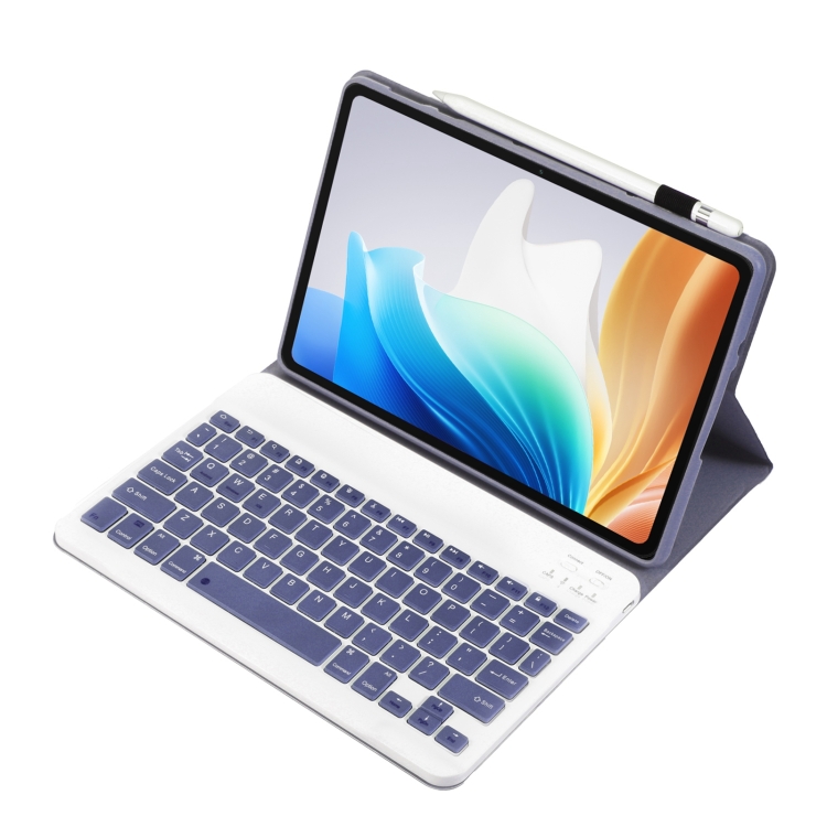 La funda de cuero TPU con Teclado Bluetooth desmontable para Oppo Pad Air2 11,4 pulgadas (Púrpura) es un accesorio diseñado para proteger y potenciar la funcionalidad de esta tablet. Este Producto combina una Cubierta resistente de TPU con un Teclado Inalámbrico Bluetooth 3.0 que se puede separar fácilmente para mayor comodidad y portabilidad. Su diseño ultrafino y ligero facilita el transporte, mientras que el Teclado ofrece una experiencia de escritura eficiente con una fuerza de Botón calibrada para usuarios que reparan por cuenta propia o profesionales que requieren movilidad y productividad. La Batería integrada de litio de 200 mAh garantiza hasta 100 horas de uso continuo y un tiempo de espera superior a 100 días, asegurando un funcionamiento fiable en un rango de temperatura de -10 °C a +55 °C.