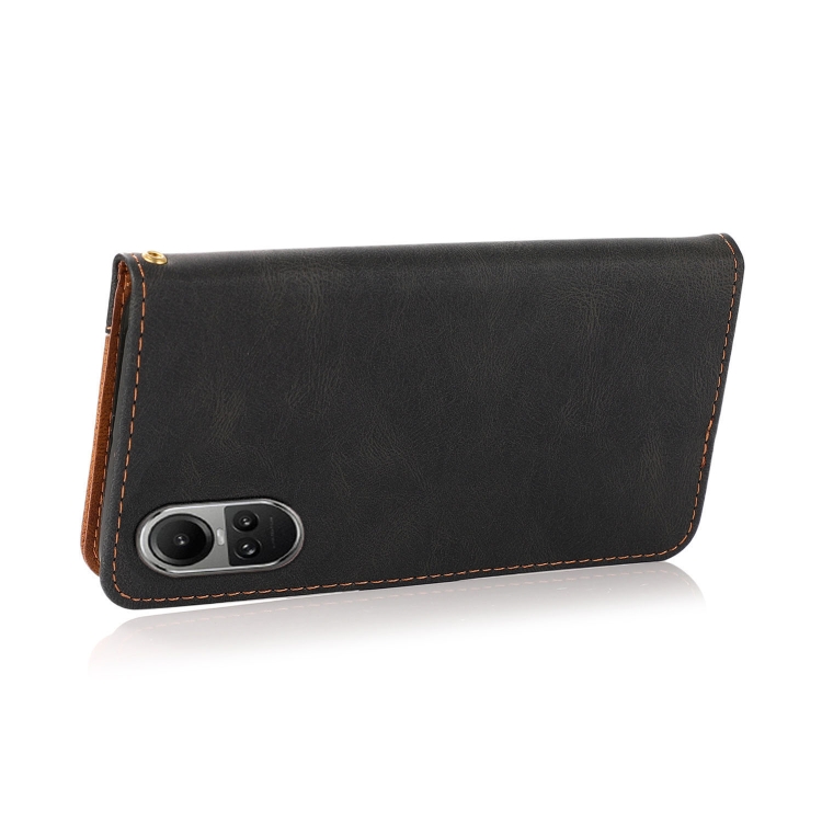 Para Oppo Reno10 5G / Reno10 Pro 5G Funda de Cuero para Teléfono con Costuras de Dos Colores Globales (Negro Marrón)