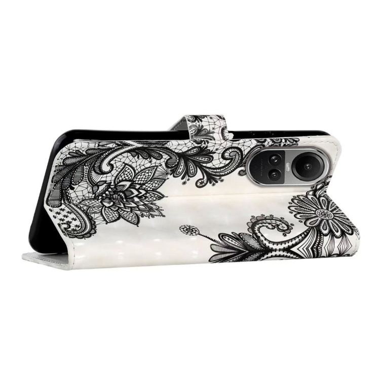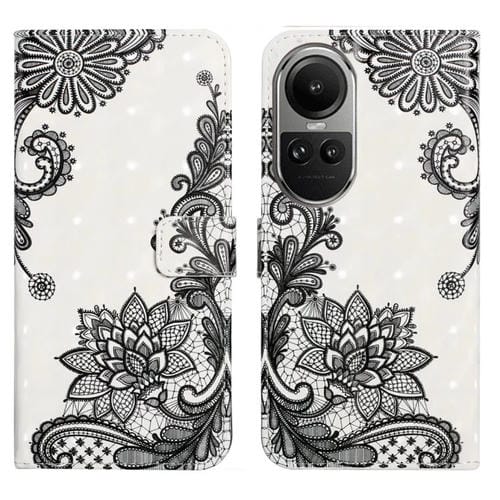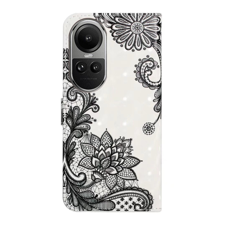 Para Oppo Reno10 5G / Reno10 Pro 5G Funda de Cuero para Teléfono con Dibujo 3D En Relieve de Aceite Global (Flor de Encaje)