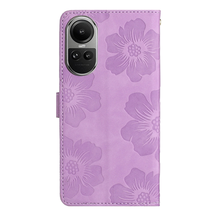 Para Oppo Reno10 5G / Reno10 Pro 5G Funda de Cuero para Teléfono con Estampado de Flores Globales (Púrpura)