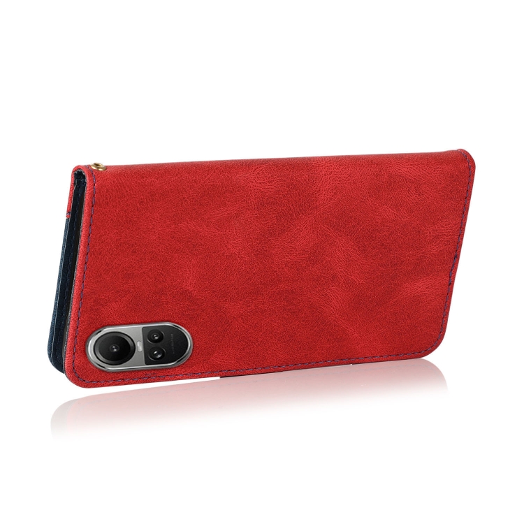 Para Oppo Reno10 5G / Reno10 Pro 5G Funda de Teléfono de Cuero con Costuras de Dos Colores Globales (Rojo Azul)
