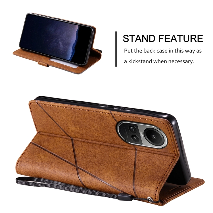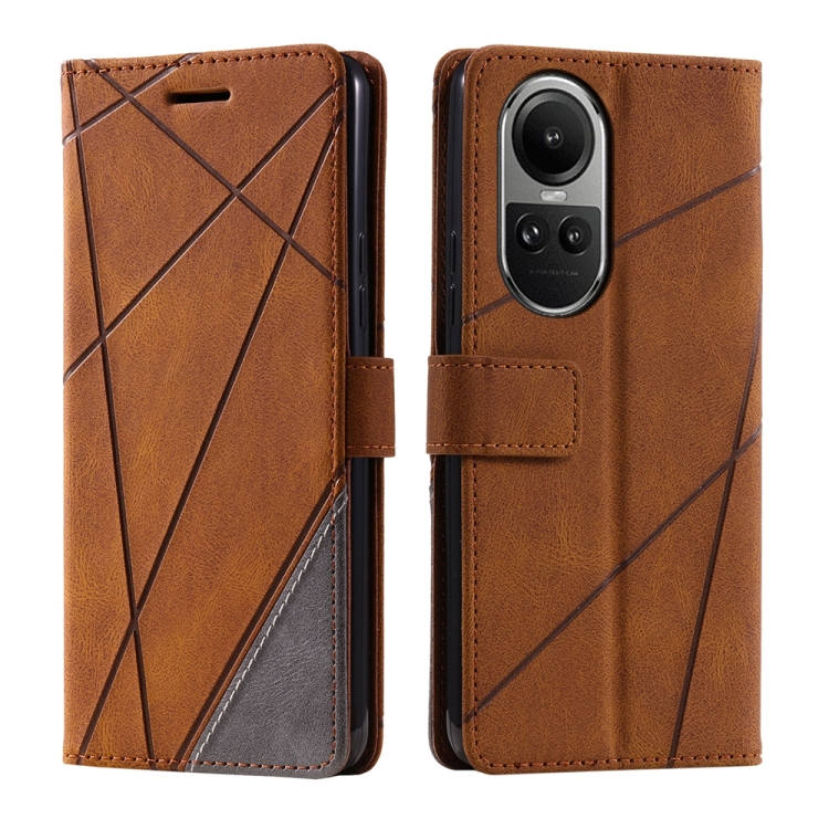 Para Oppo Reno10 Pro + Funda de Cuero para Teléfono con Empalme de Sensación de Piel (Marrón)