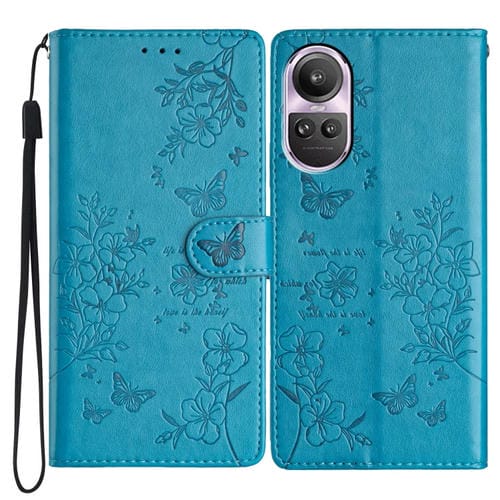 Para Oppo Reno10 / Reno10 Pro Butterfly Love Flower Funda de Cuero para Teléfono En Relieve (Azul)