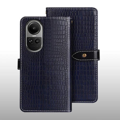 Para Oppo Reno10 / Reno10 Pro Funda para Teléfono de Cuero con Textura de Cocodrilo Global Idewei (Azul Oscuro)