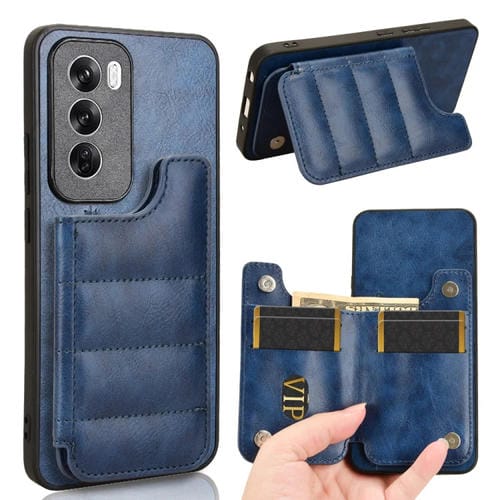 Para Oppo Reno12 5G Funda para Teléfono con Bolsa para Tarjetas de Costura con Patrón de Vaca Global (Azul)