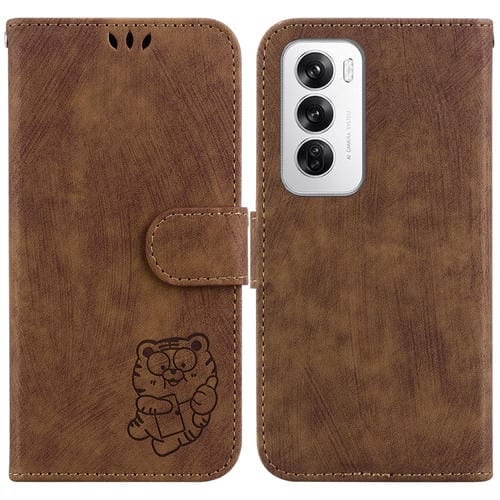 Para Oppo Reno12 5G Global Little Tiger Funda de Cuero para Teléfono En Relieve (Marrón)