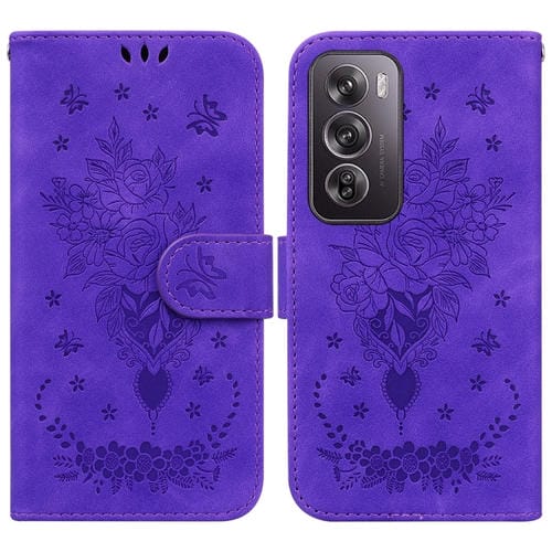 Para Oppo Reno12 Pro 5G Global Butterfly Rose Funda de Cuero para Teléfono En Relieve (Púrpura)