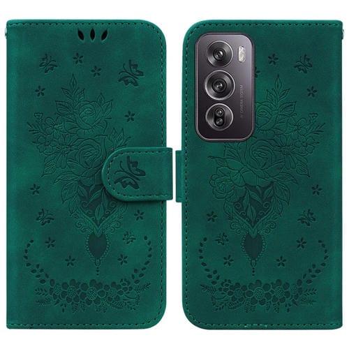 Para Oppo Reno12 Pro 5G Global Butterfly Rose Funda de Cuero para Teléfono En Relieve (Verde)