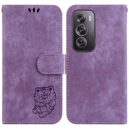 Para Oppo Reno12 Pro 5G Global Little Tiger Funda de Cuero para Teléfono En Relieve (Púrpura)