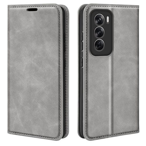 Para Oppo Reno12 Pro 5G Global Retro-Skin Funda de Cuero para Teléfono con Succión Magnética (Gris)