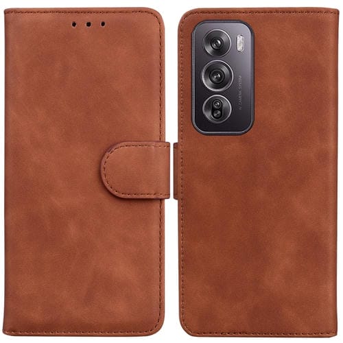 Para Oppo Reno12 Pro 5G Global Skin Feel Pure Color Funda de Cuero con Tapa para Teléfono (Marrón)
