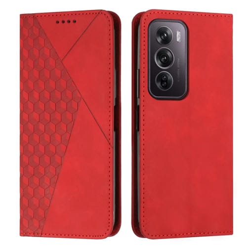 Para Oppo Reno12 Pro Global Diamond Splicing Skin Feel Funda de Teléfono de Cuero Magnético (Rojo)