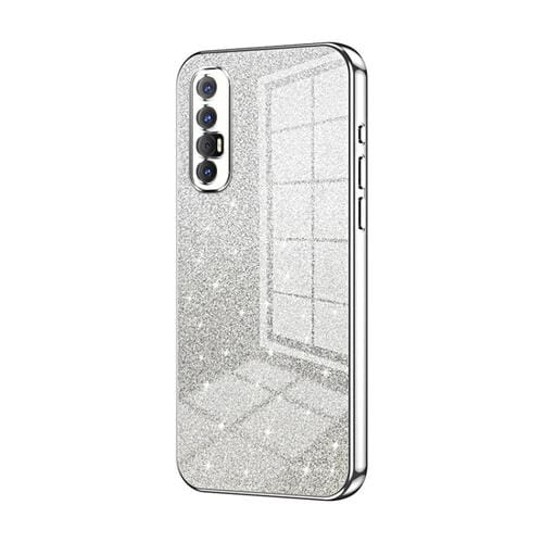 Para Oppo Reno3 Pro Estuche para Teléfono Galvanizado con Polvo de Brillo Degradado (Plata)