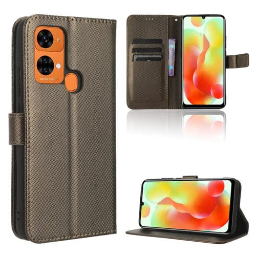 Funda de Cuero para Oukitel C33 con Textura de Diamante (Marrón)