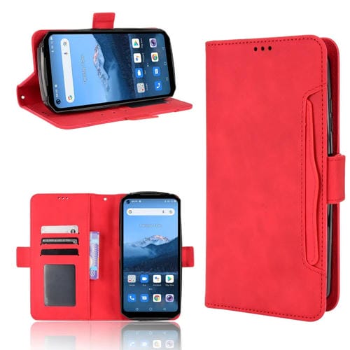 Funda de Cuero para Oukitel WP16 con Ranuras para Tarjetas y Textura Becerro (Rojo)