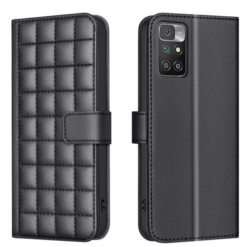 Para Redmi 10 2022 / Note 11 4G Funda de Cuero para Teléfono con Textura Cuadrada (Negro)