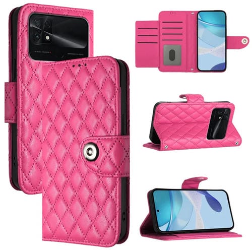 Para Redmi 10C / Redmi 10 2022 India Funda para Teléfono con Tapa de Cuero con Textura Rómbica y Cordón (Rojo Rosa)