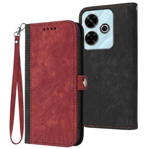 Para Redmi 13 4G Funda de Cuero para Teléfono con Correa de Mano con Doble Pliegue y Hebilla Lateral (Rojo)