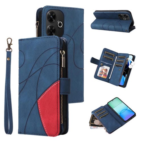 Para Redmi 13 4G Global Funda de Cuero para Teléfono con Billetera con Cremallera y 9 Ranuras para Tarjetas de Doble Color (Azul)