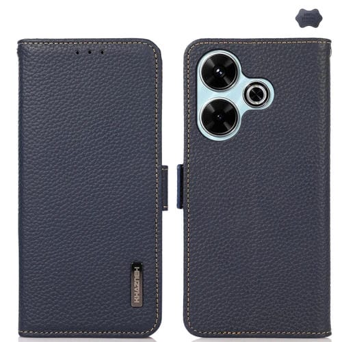 Para Redmi 13 4G Khazneh Funda para Teléfono Rfid de Cuero Genuino Litchi Lateral Magnético (Azul)
