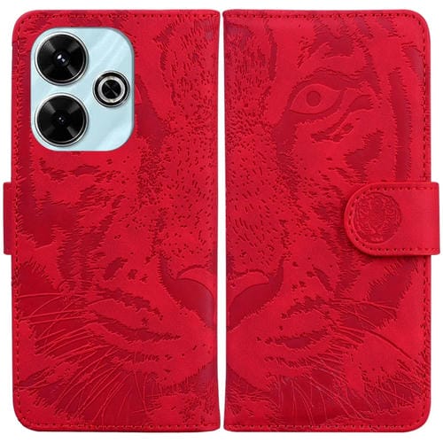 Para Redmi 13 4G Tiger Embossed Pattern Funda de Cuero con Tapa para Teléfono (Rojo)