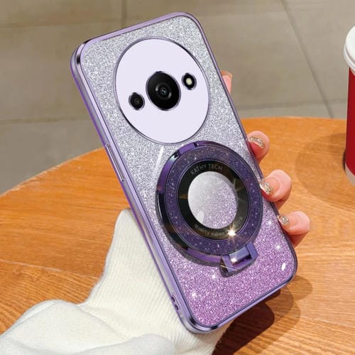 Para Redmi A3 Funda para Teléfono de TPU con Soporte Redondo y Brillo Degradado Plateado (Púrpura)