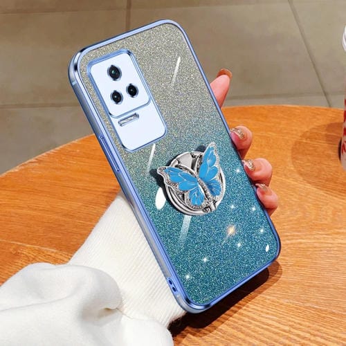 Para Redmi K50 / K50 Pro Funda para Teléfono de TPU con Soporte de Mariposa con Brillo Degradado Plateado (Azul Sierra)