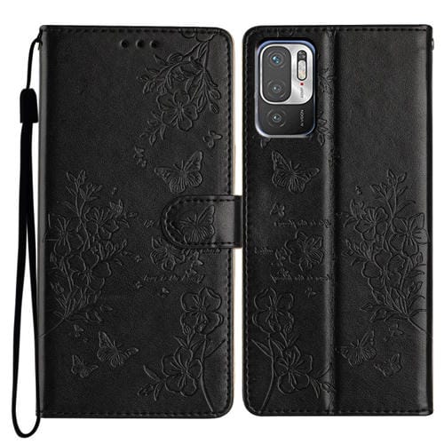 Para Redmi Note 10 5G Funda de Cuero para Teléfono con Mariposas y Flores (Negro)