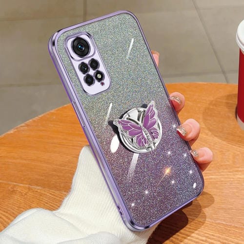 Para Redmi Note 11S Funda para Teléfono de TPU con Soporte de Mariposa con Brillo Degradado Plateado (Púrpura)