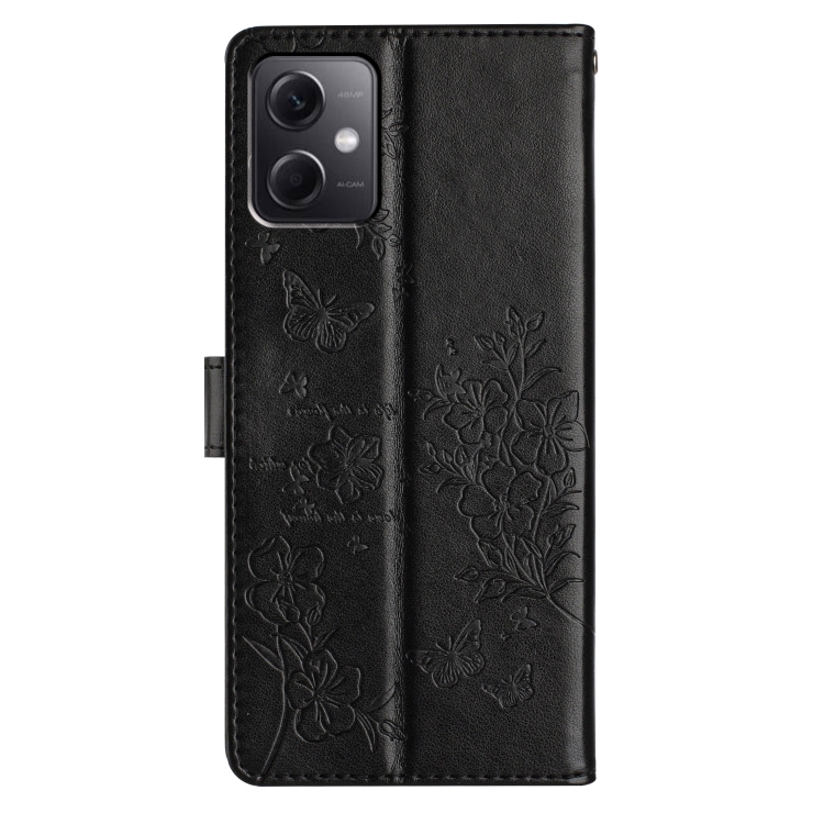 Para Redmi Note 12 5G Funda de Cuero para Teléfono con Mariposas y Flores Globales (Negro)