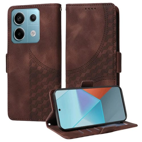 Para Redmi Note 13 Pro 5G Funda para Teléfono de Cuero Estrellado con Rombos En Relieve (Marrón)