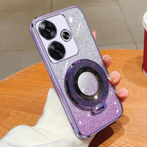 Para Redmi Turbo 3 Funda para Teléfono de TPU con Soporte Redondo y Brillo Degradado Plateado (Púrpura)