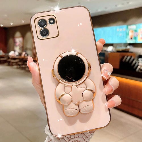 Estuche para Teléfono Samsung Galaxy A03 Embrace Stars con Soporte Astronauta Galvanizado (Rosa)