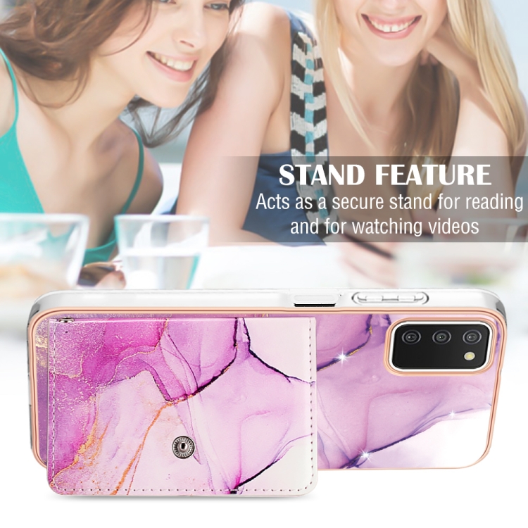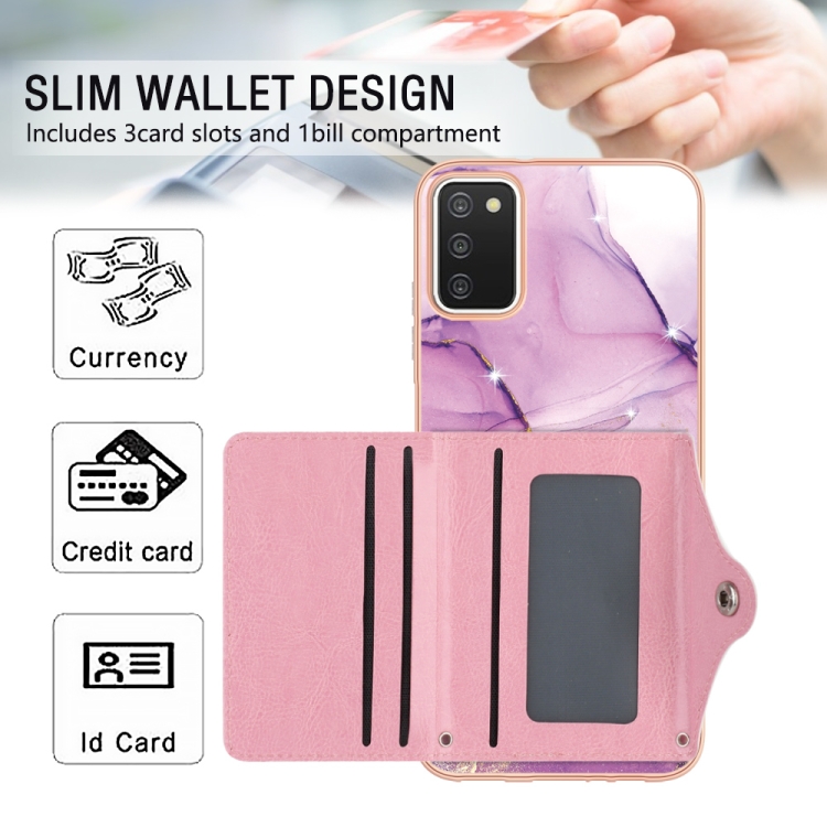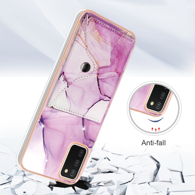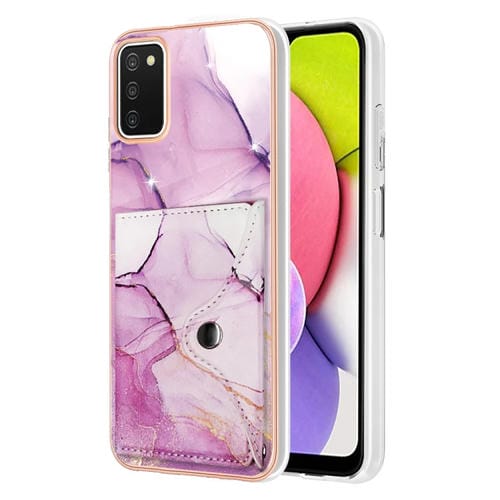 Estuche para teléfono Samsung Galaxy A03S Versión Estadounidense con ranura para tarjeta IMD patrón de mármol (Oro Rosa Púrpura)