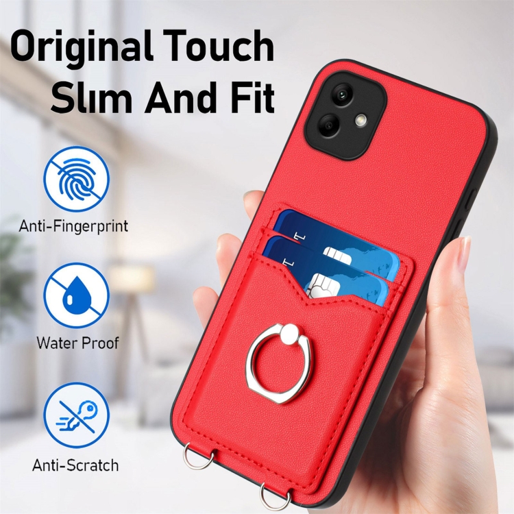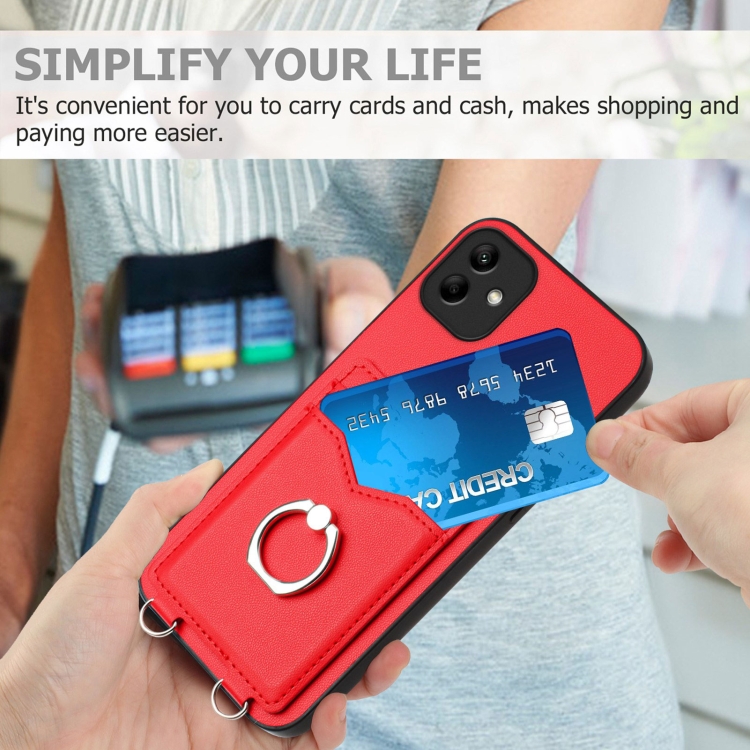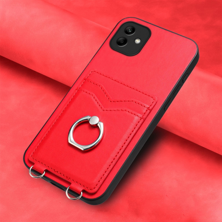 Estuche para Teléfono Samsung Galaxy A04 4G R20 con Soporte para Tarjeta y Anillo (Rojo)