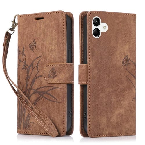 Funda para Teléfono Samsung Galaxy A05 4G Cuero con Relieve Mariposa Orquídea (Marrón)