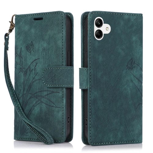 Funda para Teléfono Samsung Galaxy A05 4G Cuero Relieve Mariposa Orquídea (Verde)