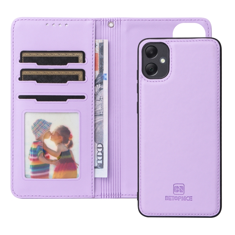 Funda de teléfono Betopnice BN-005 para Samsung Galaxy A05 2 en 1 cuero genuino desmontable (Púrpura Claro)