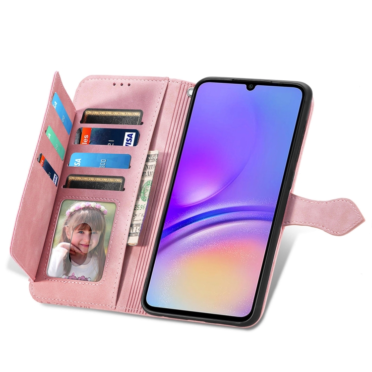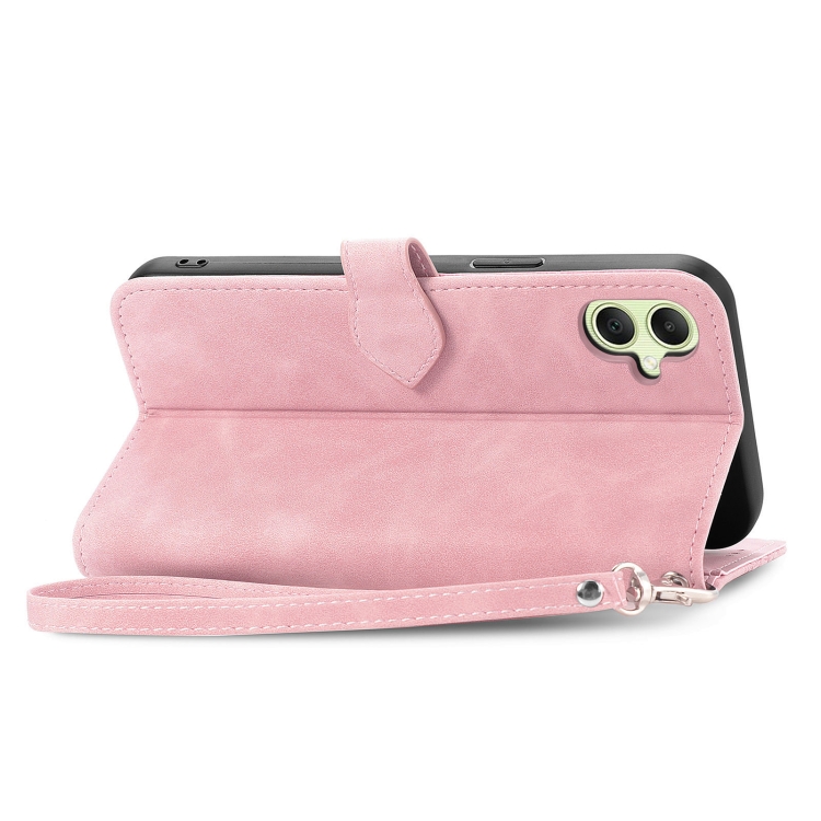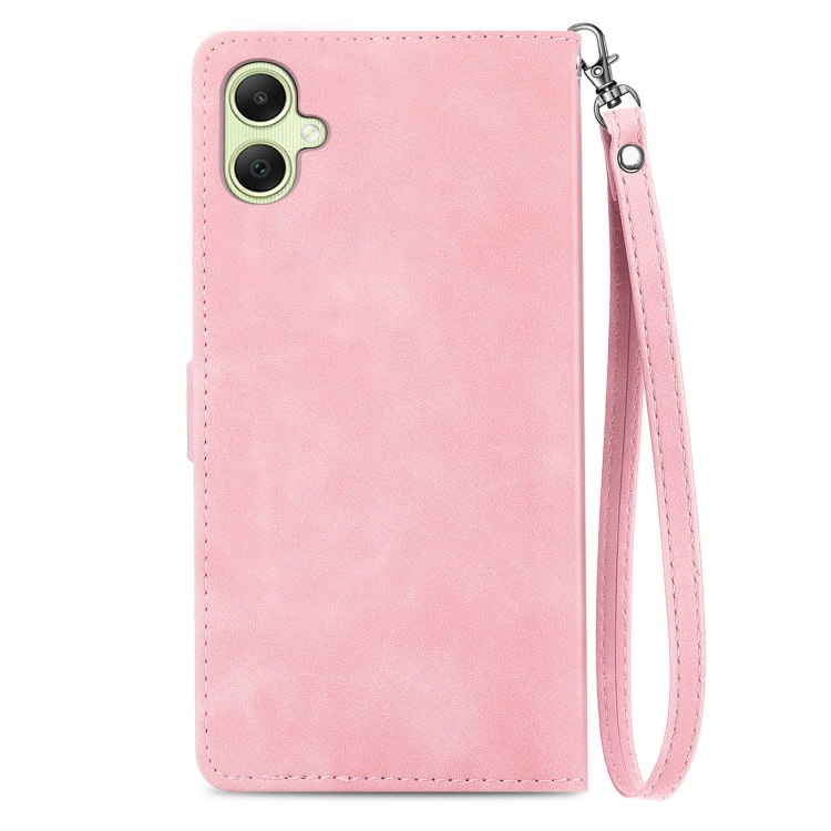 Funda de Cuero Samsung Galaxy A05 con Cremallera y Flores en Relieve (Rosa)