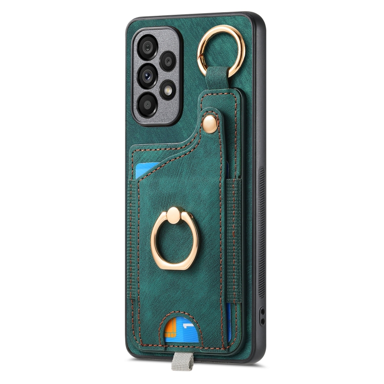 Funda para Teléfono Samsung Galaxy A05 con Bolsa para Tarjeta Anillo y Lazo para Colgar (Verde)