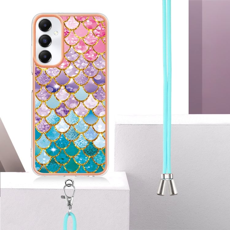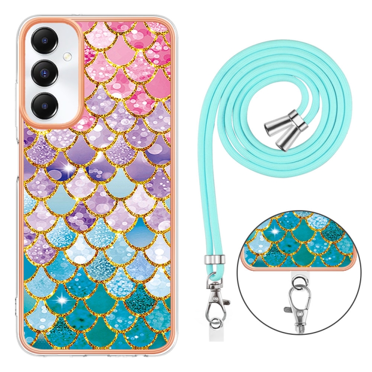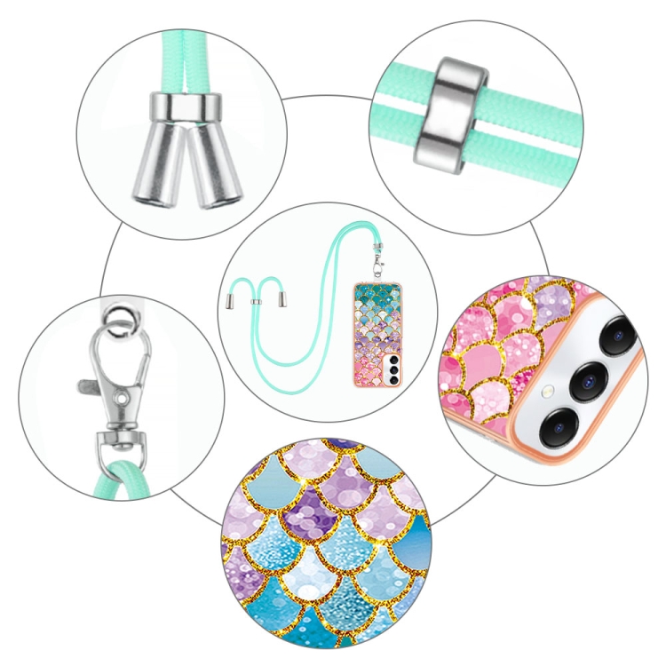 Estuche para Teléfono Samsung Galaxy A05S Imd TPU con Galvanoplastia y Cordón (Escamas de Colores)