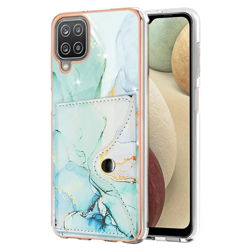 Estuche para Teléfono Samsung Galaxy A12 con Ranura para Tarjeta Imd Patrón de Mármol (Verde)