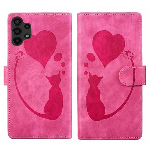 Estuche para Teléfono Samsung Galaxy A13 4G 5G A04 Cuero Relieve Gato Corazón Bolígrafo (Rosa)