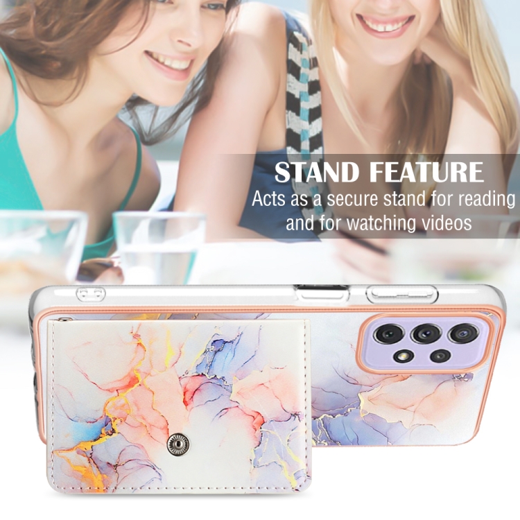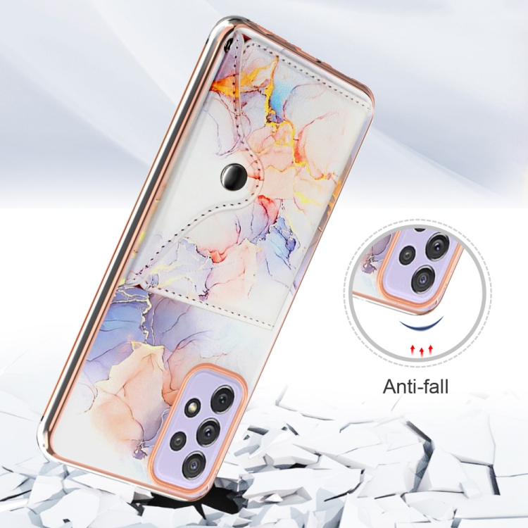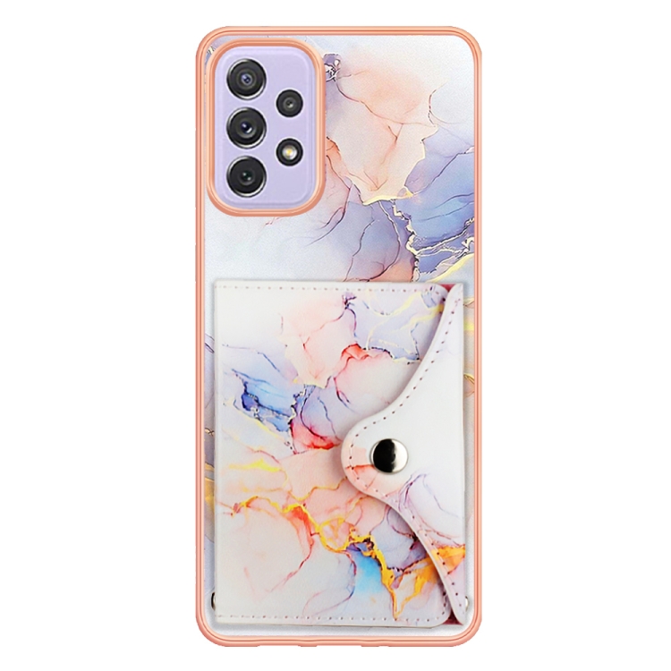 Estuche para teléfono Samsung Galaxy A13 4G con ranura para tarjeta IMD patrón de mármol (Blanco)