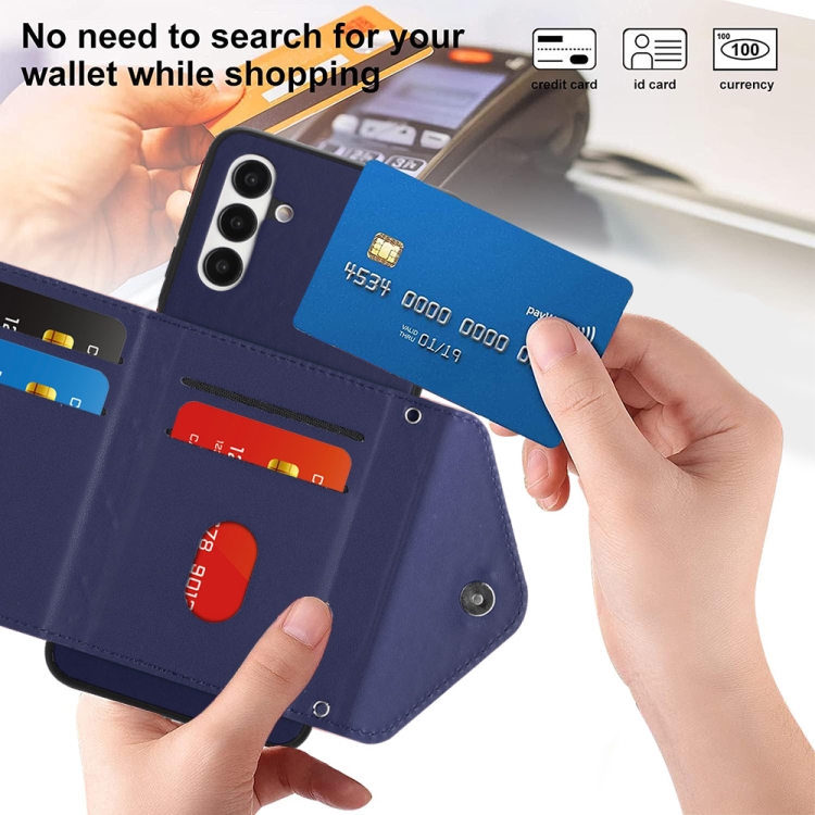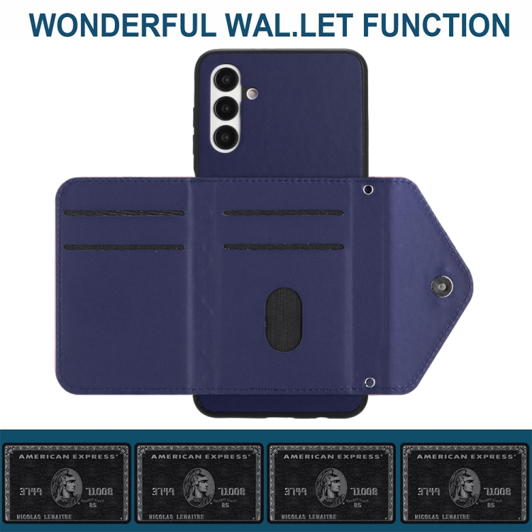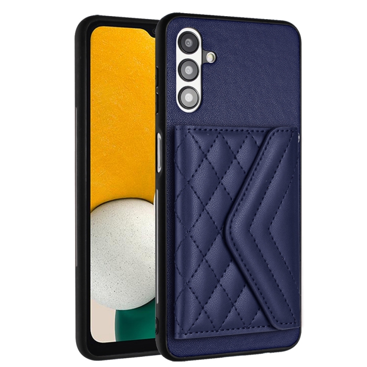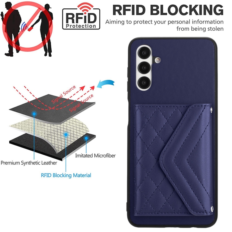 Funda para Teléfono Samsung Galaxy A13 5G A04S Rfid con Bolsa para Tarjetas Textura Rómbica Cordón Largo (Púrpura Oscuro)