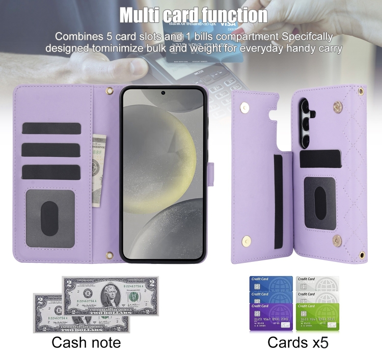 Funda Cruzada de Cuero Samsung Galaxy A15 4G 5G Rómbico Multifunción (Púrpura)