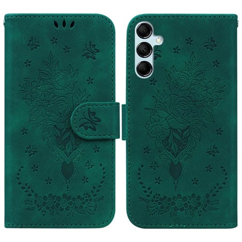 Funda para Teléfono Samsung Galaxy A15 Cuero Relieve Mariposa y Rosa (Verde)