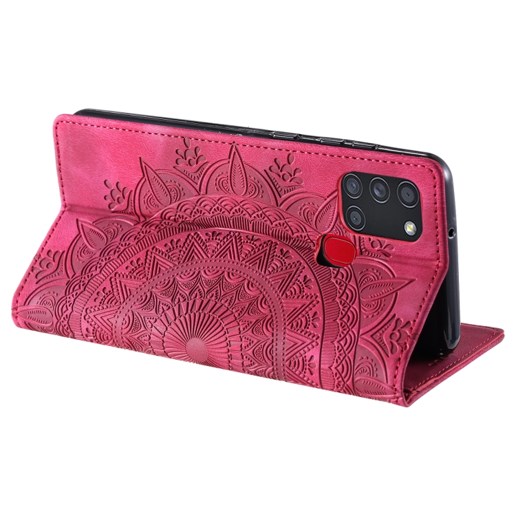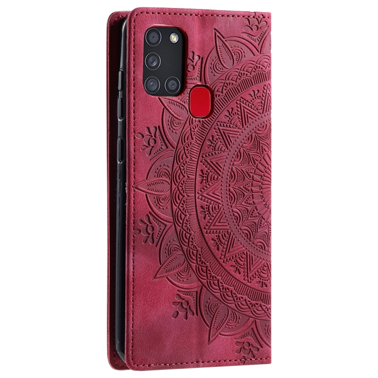Funda de Cuero Magnética Totem para Samsung Galaxy A21S en Relieve (Rojo)